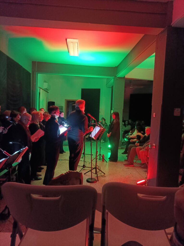 Τραγουδά η χορωδία του Μουσικού Εργαστηρίου Λήμνου και συμμετέχει μαζί της ο Τενόρος Γιώργος Βαλέττας.
