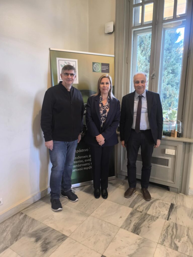 Ιδιαίτερη σημασία είχε, επίσης, η συνάντηση στο Πράσινο Ταμείο με τον Πρόεδρο κ. Ιωάννη Ανδρουλάκη και τον Διευθυντή κ. Γεώργιο Πρωτόπαπα, ενόψει της προετοιμασίας του Δήμου Λήμνου για την υποβολή πρότασης χρηματοδότησης. Στο πλαίσιο της συζήτησης εξετάστηκαν συνολικά οι δυνατότητες υποστήριξης του Πράσινου Ταμείου προς το Δήμο, ενώ έγινε ειδική αναφορά στο Σχέδιο Αστικής Ανθεκτικότητας, το οποίο ο Δήμος Λήμνου προγραμματίζει να υποβάλει τον Μάρτιο, με την επικείμενη σχετική πρόσκληση.