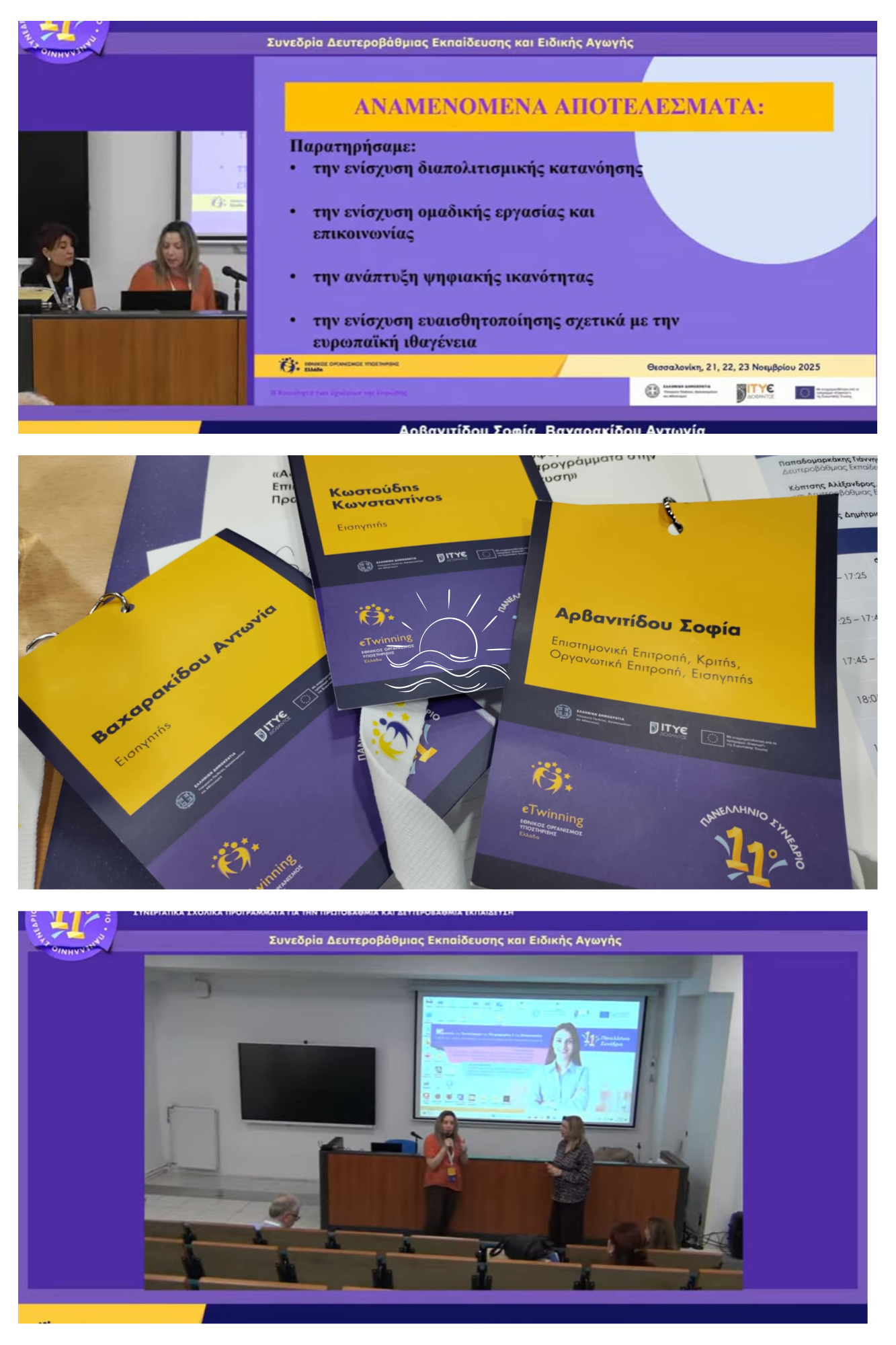 Επιπλέον, το βραβευμένο με εθνική ετικέτα ποιότητας έργο “Draw your own Camino. Narrowing paths among schools”, που ολοκληρώθηκε πέρσι με τη συμμετοχή μαθητών του ΓΕΛ Μύρινας και του ΕΠΑΛ Μύρινας, παρουσιάστηκε ως καλή πρακτική από τις δύο εκπαιδευτικούς αγγλικής Σοφία Αρβανιτίδου (ΓΕΛ Μύρινας) και Αντωνία Βαχαρακίδου (ΕΠΑΛ Μύρινας), στο 11ο Πανελλήνιο Συνέδριο eTwinning με τίτλο: «Αξιοποίηση των Τεχνολογιών της Πληροφορίας και της Επικοινωνίας στα συνεργατικά σχολικά προγράμματα στην Πρωτοβάθμια και Δευτεροβάθμια Εκπαίδευση», το οποίο πραγματοποιήθηκε στη Θεσσαλονίκη, 21–23 Νοεμβρίου 2025.