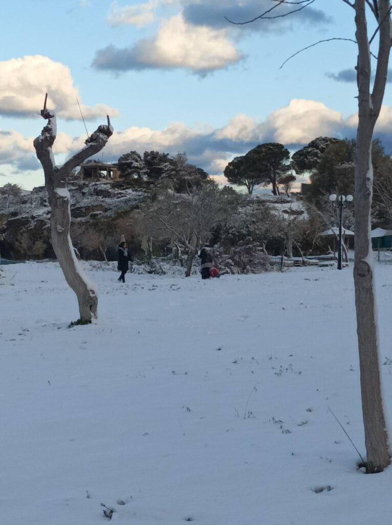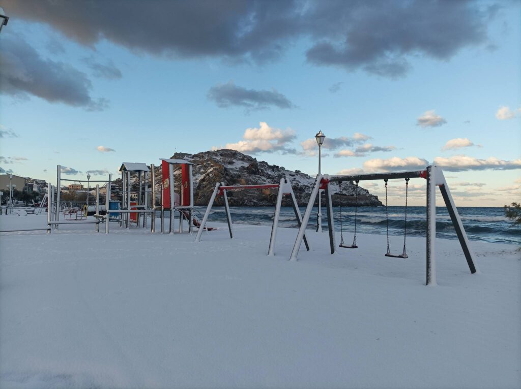 Βγαίνοντας γύρω στις 8:00 το πρωί να βγάλω τις φωτογραφίες, είδα ήδη μία μαμά με δύο παιδάκια που έπαιζαν στο χιόνι.