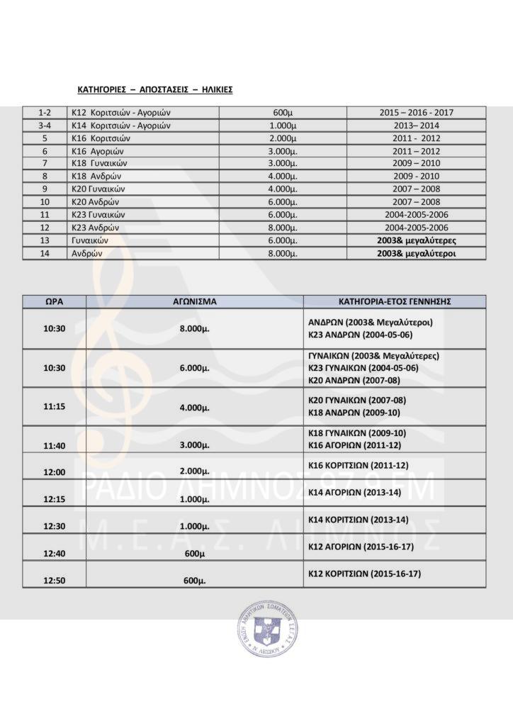 ΄Ομιλος Λήμνου: Σάββατο 24 Ιανουαρίου 2026 στην περιοχή του Γυμνασίου Μύρινας, με αφετηρία – τερματισμό το Γυμνάσιο Μύρινας.