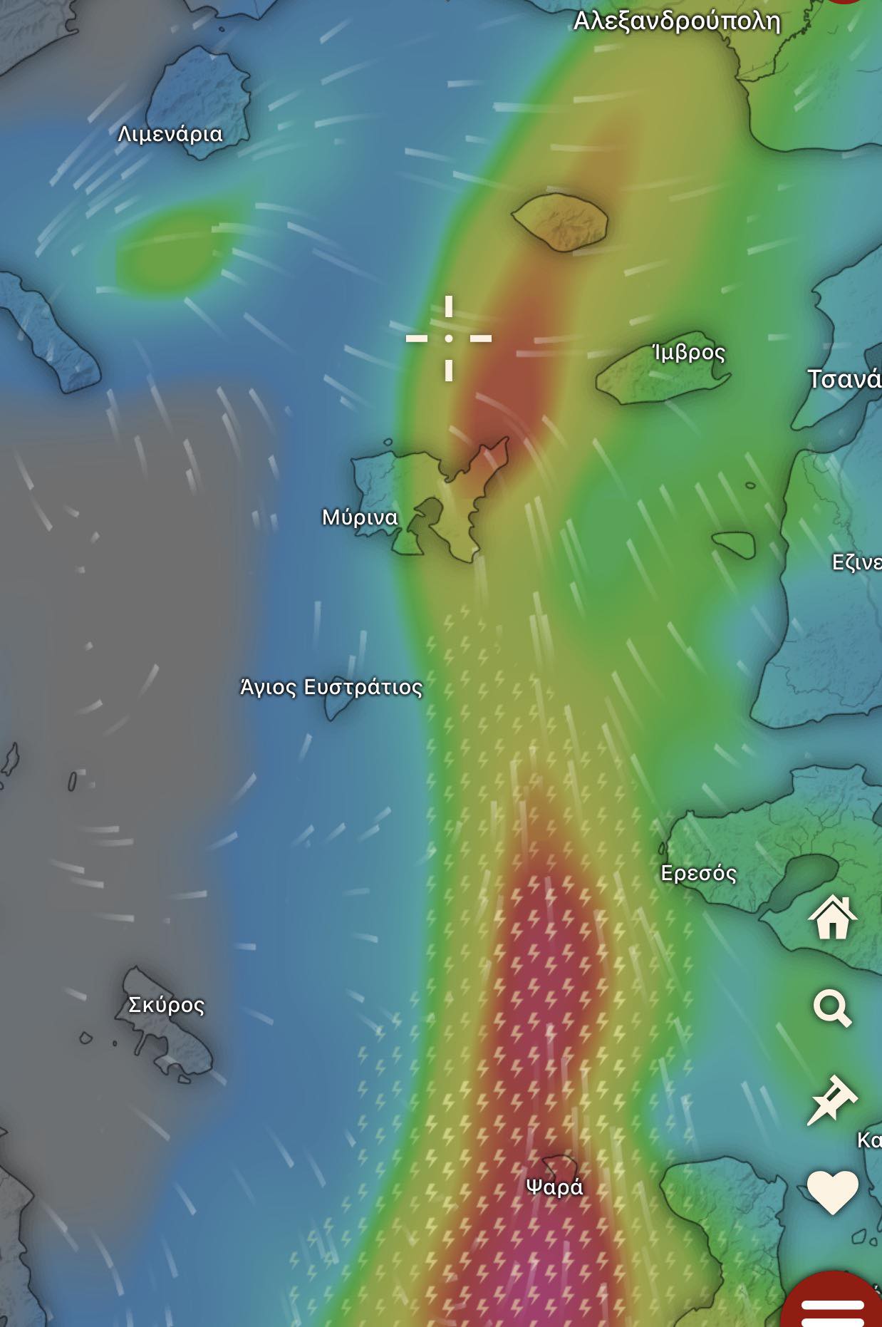 Πηγές δεδομένων καιρού: ΕΜΥ, NOAA (AI enhanced modeling), Windy