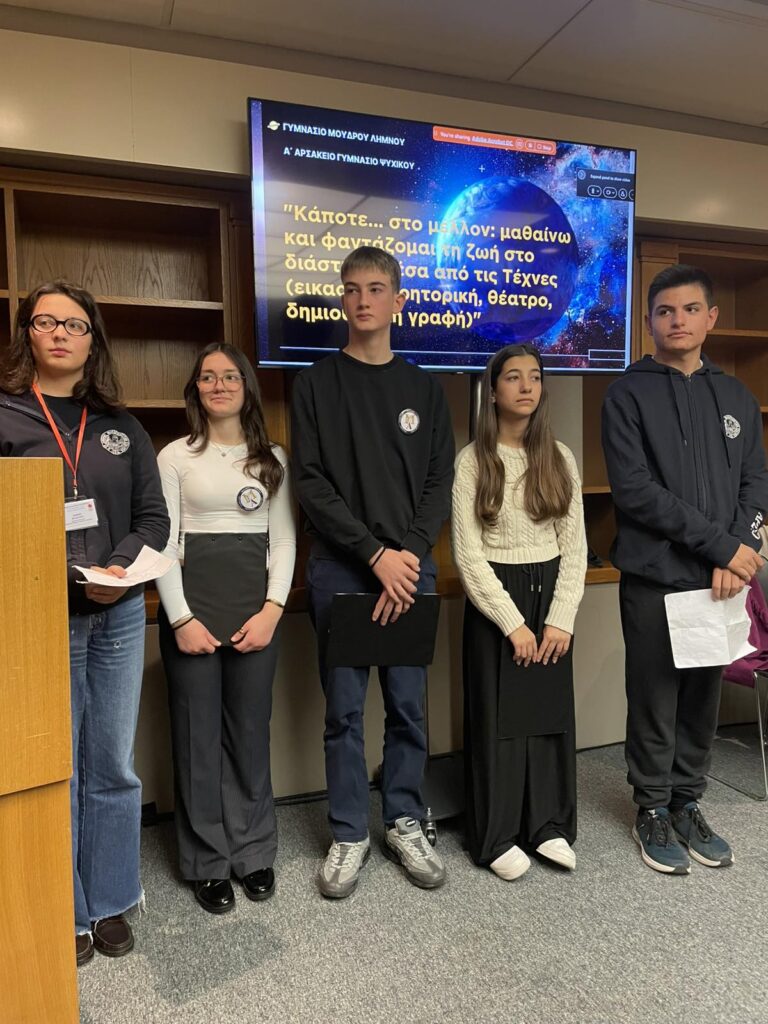 Συγκεκριμένα η μαθητική ομάδα, αποτελούμενη από: τον Αναστάσιο Διαμαντόπουλο, την Ευστρατία Ζωή Μιχαλακούδη και την Ελεονώρα Σέχου, παρουσίασε τις εργασίες στο πλαίσιο της συνεργασίας του σχολείου με το Α’ Αρσάκειο Γυμνάσιο Ψυχικού και το Γυμνάσιο Αγ. Κηρύκου Ικαρίας και με υπεύθυνους εκπαιδευτικούς τους/τις: Μαρία Αυγολούπη, Χρήστο Κουκούμη, Θεοδώρα Λυμπέρη, Ευαγγελία Τσάκου και Ευαγγελία Λουτριανάκη (Α’ Αρσάκειο Γυμνάσιο Ψυχικού) και Νικόλαο Τσιαντό (Γυμνάσιο Αγ. Κηρύκου Ικαρίας). Οι παρουσιάσεις έχουν αναρτηθεί στο κανάλι του σχολείου στο YouTube: https://youtu.be/4sbLPXNPbhc?si=fSPHoUv7VL_sVTQ8