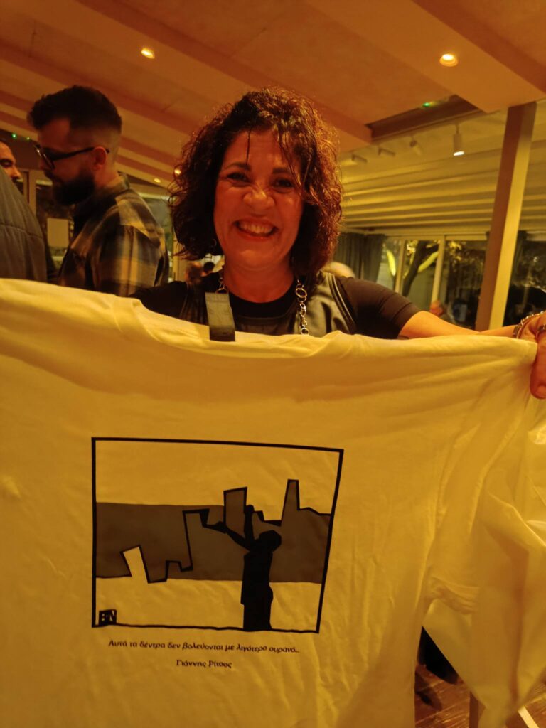Δύο από τα δώρα ήταν μπλουζάκια με στίχους του Γιάννη Ρίτσου, ενώ δεν έλειψαν και οι ευχάριστες εκπλήξεις: δύο αγρότες, μέλη του ΚΚΕ, προσέφεραν αυθόρμητα δύο αρνιά, τα οποία κληρώθηκαν άμεσα.