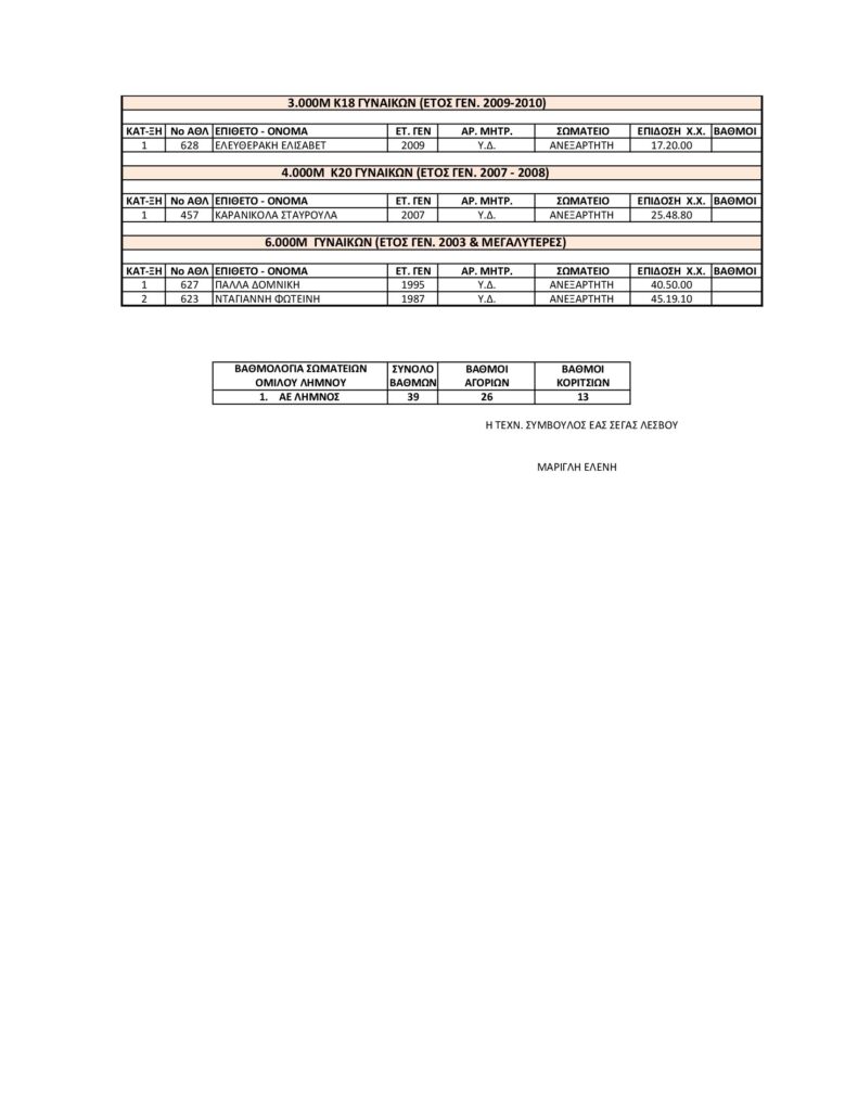 Το Δ.Σ. της ΕΑΣ ΣΕΓΑΣ Λέσβου συγχαίρει για τη συμμετοχή και τις επιδόσεις τους όλους τους συμμετέχοντες αθλητές-τριες, μικρούς και μεγάλους, ανεξάρτητους και σωματείων , καθώς και τους προπονητές τους.