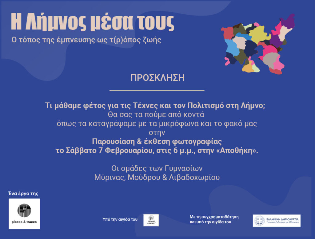 Το εκπαιδευτικό έργο «Η Λήμνος μέσα τους. Ο τόπος της έμπνευσης ως τ(ρ)όπος ζωής» επεδίωξε να προσεγγίσει, μέσα από το ανήσυχο εφηβικό βλέμμα, τον τρόπο ζωής και δημιουργίας των καλλιτεχνών και των επαγγελματιών του Πολιτισμού που ζουν στη Λήμνο, και να εξοικειώσει μαθήτριες και μαθητές σχετικά με εναλλακτικές όσο και βιώσιμες επαγγελματικές επιλογές.