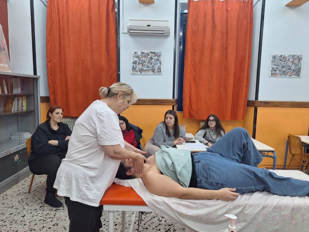 Οι σπουδάστριες διδάχθηκαν και εκτέλεσαν οι ίδιες λεμφική μάλαξη και λεμφικές διατάσεις, εφαρμόζοντας στην πράξη όσα έμαθαν υπό την καθοδήγηση της ειδικού.