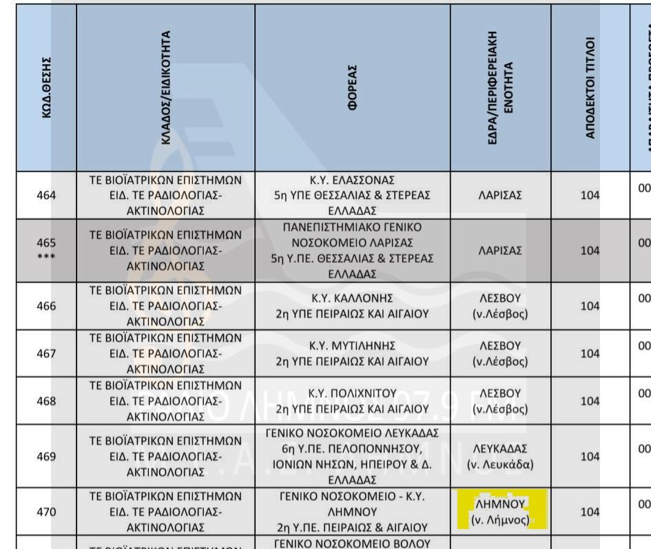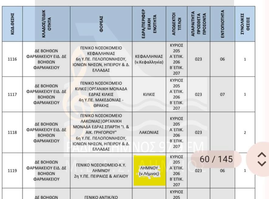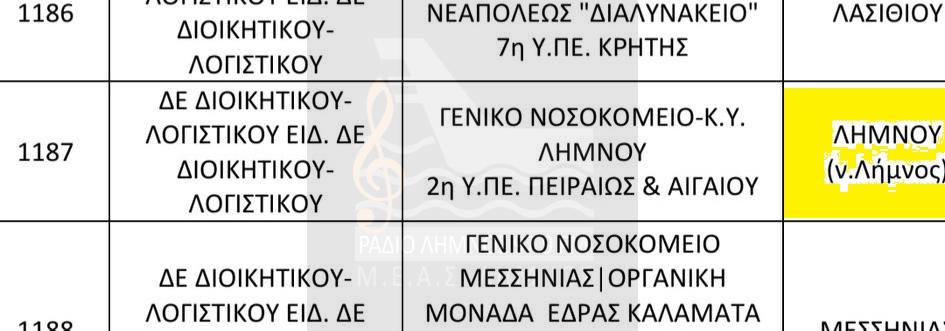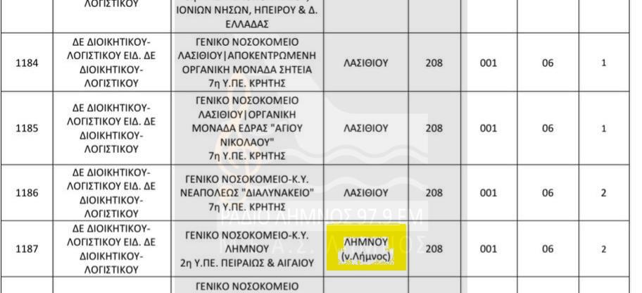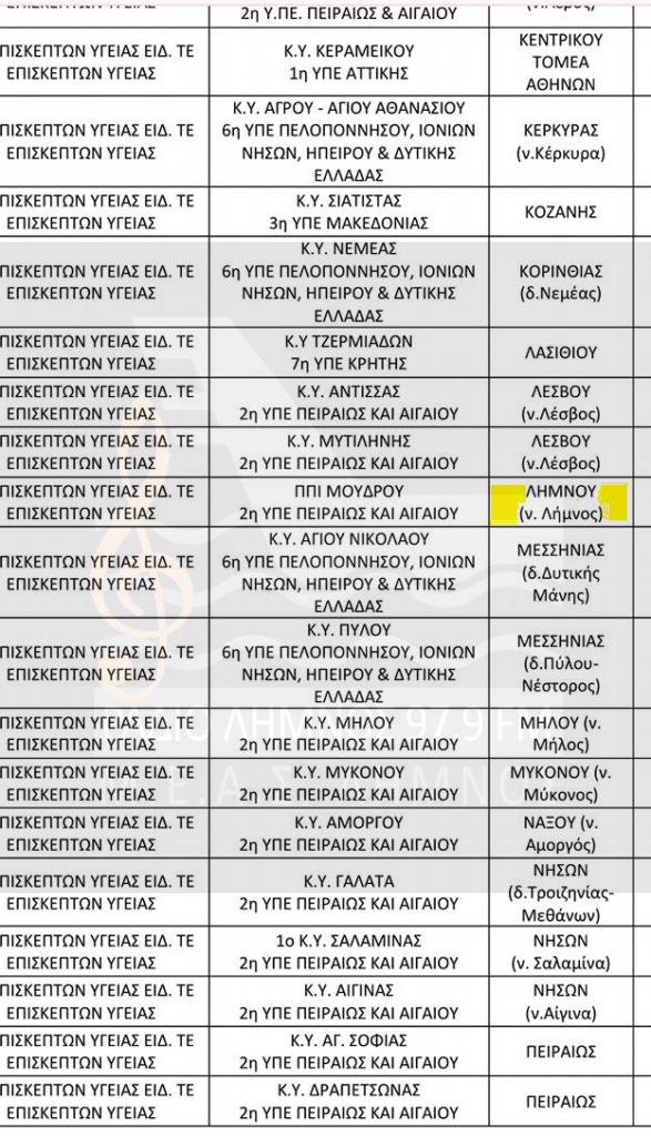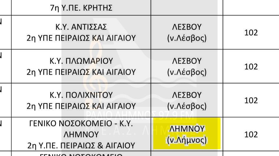Δείτε εδώ την κατανομή των θέσεων που προβλέπονται για το Νοσοκομείο ΛΗΜΝΟΥ και το ΠΙ ΜΟΥΔΡΟΥ (Επισκεπτών Υγείας)!