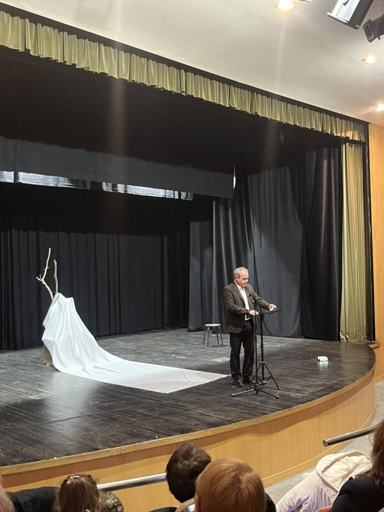 Μια παράσταση παντομίμας με τίτλο «Ήχος της σιωπής», εμπνευσμένη από τα βιβλία του αρχαιολόγου της Ακαδημίας Αθηνών, συγγραφέα παιδικών βιβλίων και ιδρυτή του Μουσείου Παιδικού Παιχνιδιού και Βιβλίου Λήμνου Χρήστου Μπουλώτη, παρουσιάστηκε χθες βράδυ, 5 Φεβρουαρίου 2026, στο Κλειστό Δημοτικό Θέατρο Συκεών.