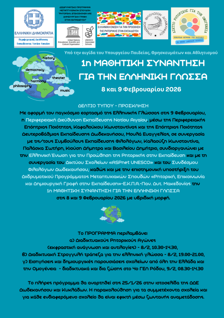 Σήμερα, 9 Φεβρουαρίου 2026, ως σχολείο-μέλος του Δικτύου Συνδεδεμένων σχολείων της UNESCO ASPnet, τιμήσαμε την παγκόσμια ημέρα Ελληνικής γλώσσας, με παρουσιάσεις και βίντεο.
