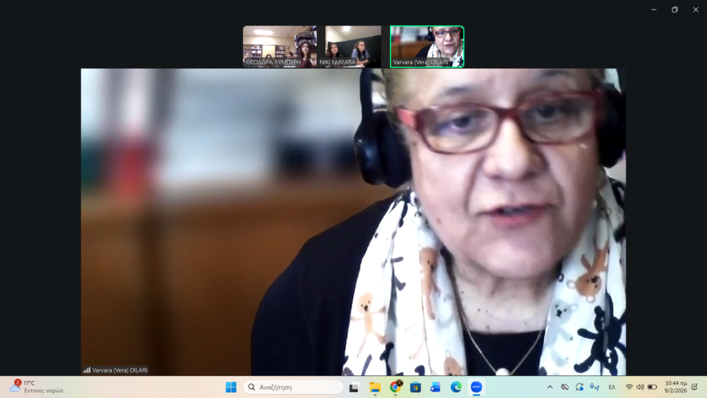 Στη διαδικτυακή συνάντηση είχαμε την τιμή να είναι μαζί μας και να μας εμπνεύσει με την ουσιαστική της συμμετοχή και τις εύστοχες επισημάνσεις της την κ. Βέρα Δηλάρη, Εθνική συντονίστρια του Δικτύου ASPnet Ελλάδος, του Τμήματος Διεθνών Σχέσεων της Διεύθυνσης Ευρωπαϊκών και Διεθνών Θεμάτων, Παιδείας Ομογενών και Διαπολιτισμικής Εκπαίδευσης του Υπουργείου Παιδείας, Θρησκευμάτων και Αθλητισμού. Την ευχαριστούμε θερμά για την παρουσία της! Η διαδικτυακή μας συνάντηση έκλεισε με τον καλύτερο τρόπο, καθώς οι αντιπροσωπείες των δύο αδελφοποιημένων σχολείων ψάλλαμε από κοινού τον Εθνικό μας ύμνο!
