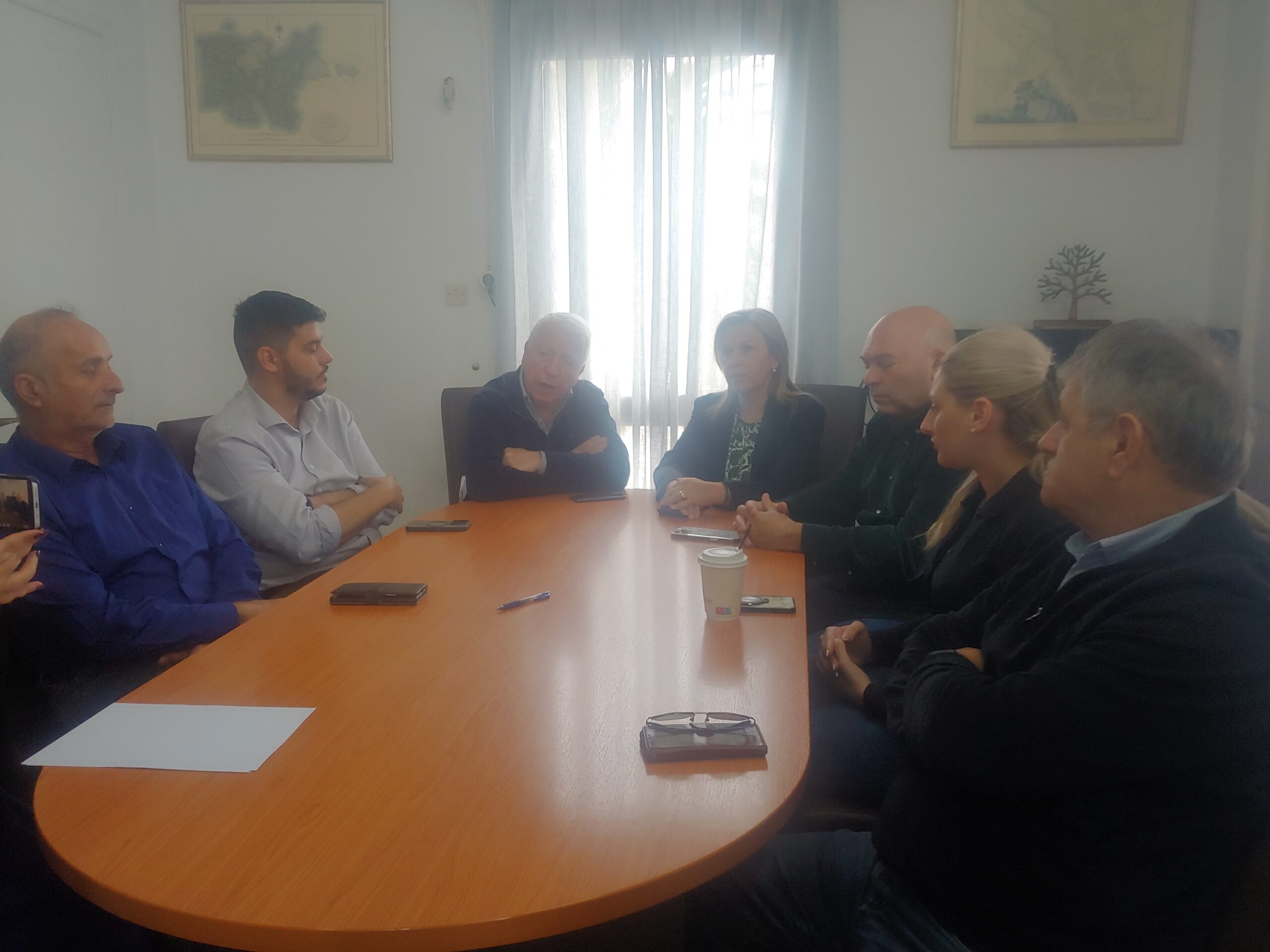 Δίπλα στον περιφερειάρχη και η δήμαρχος Λήμνου κ. Ελεονώρα Γεώργα, καθώς νωρίτερα σήμερα είχαν συνάντηση για το θέμα του Λιμανιού της Μύρινας.