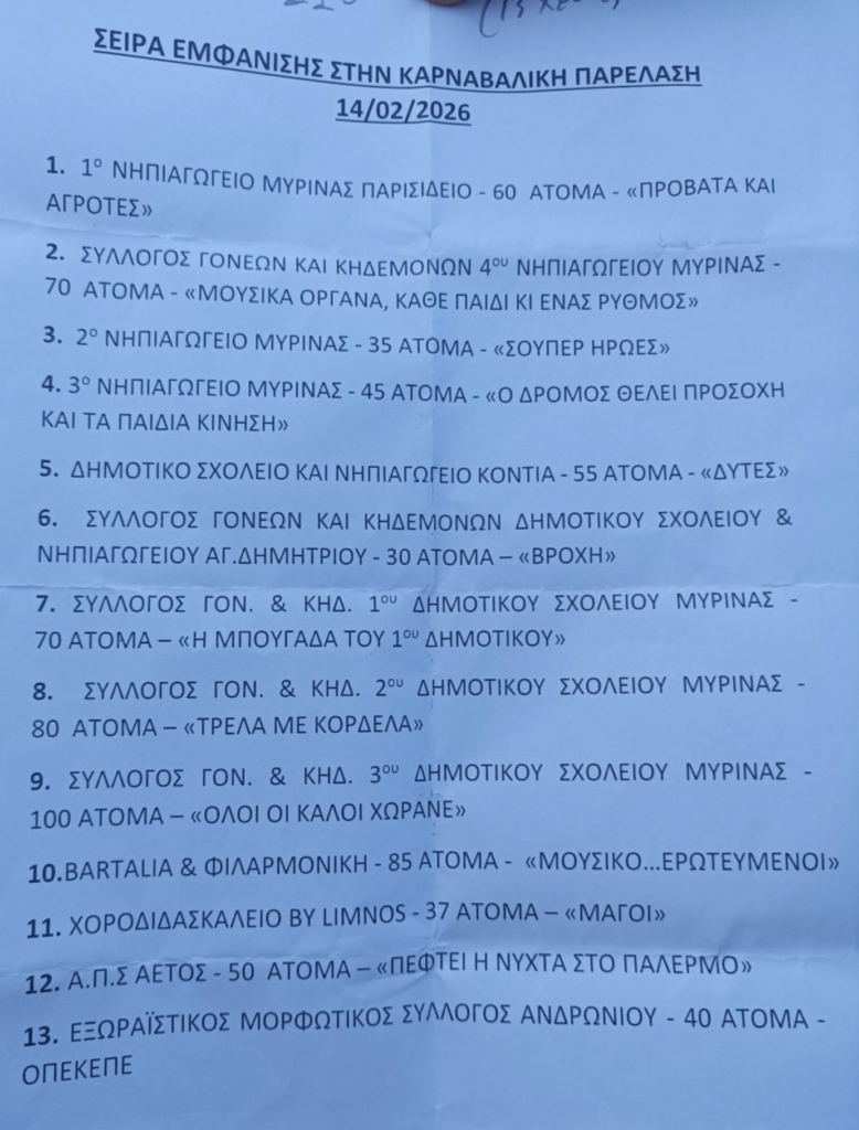 11η Καρναβαλική Παρέλαση στη Μύρινα, 13 χρόνια μετά από την πρώτη.