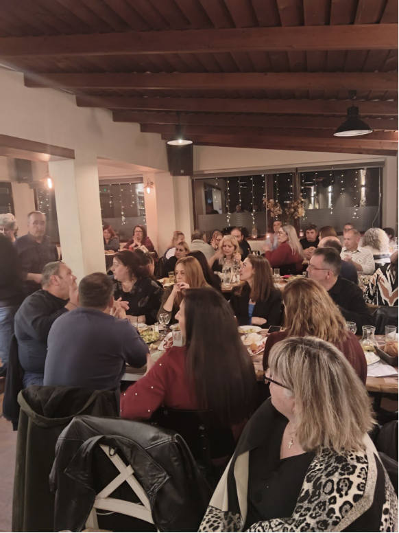 Πριν την κοπή της Πρωτοχρονιάτικης Αγιοβασιλειόπιτας, ο Πρόεδρος του Συλλόγου, Νικόλαος Αχιλαδέλλης, ευχαρίστησε τα μέλη του Διοικητικού Συμβουλίου, για την υπέροχη Συνεργασία, η οποία, είναι σίγουρο, ότι θα συνεχιστεί. Επίσης επεσήμανε ότι πρέπει να γνωρίζουμε ότι το Δ.Σ. του Συλλόγου μας ήταν, είναι και θα είναι κοντά στα προβλήματα της κάθε Συναδέλφισσας και του κάθε Συναδέλφου και θα προσπαθεί να δίνει λύσεις. Ό,τι μας απασχολεί πρέπει να το γνωρίζουμε ώστε να επεμβαίνουμε έγκαιρα και αποτελεσματικά.