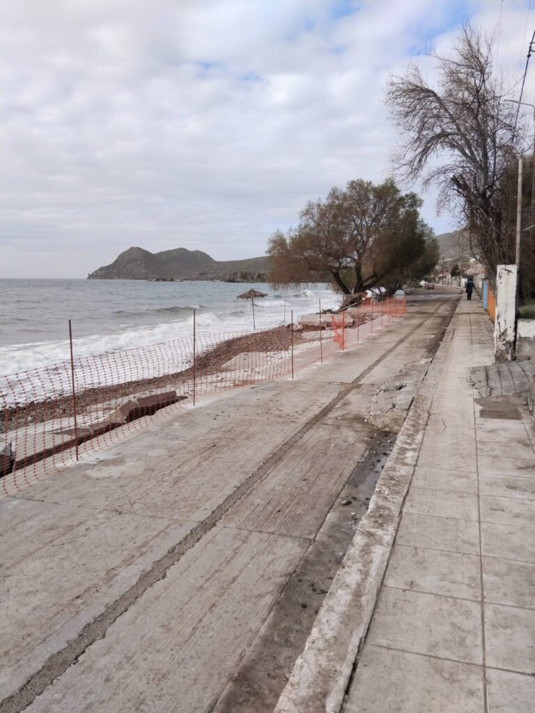 Το μεγαλύτερο πλήγμα από την επέλαση της κακοκαιρίας δέχθηκε το παραλιακό μέτωπο του Αγίου Ιωάννη Κάσπακα, όπου προκλήθηκε υποχώρηση του οδοστρώματος σε τμήμα της παραλιακής οδού. Κλιμάκιο της Τεχνικής Υπηρεσίας διενήργησε αυτοψία και αναλυτική αποτύπωση των ζημιών, με μετρήσεις και τεχνική αξιολόγηση της κατάστασης. Παράλληλα, συνεργεία του Δήμου προχώρησαν σε καθαρισμούς, απομάκρυνση φερτών υλικών και τοποθέτηση σήμανσης και προειδοποιητικών μέτρων.