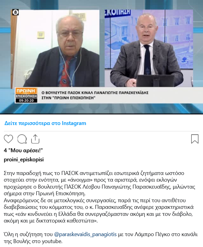 Ο βουλευτής Λέσβου είχε εξοργίσει τη Χαριλάου Τρικούπη μετά τις νέες δηλώσεις που έκανε ότι το ΠΑΣΟΚ θα μπορούσε να συνεργαστεί ακόμη και με το διάβολο, ακόμη και με δικτατορικά καθεστώτα, αν η Ελλάδα κινδυνεύει.