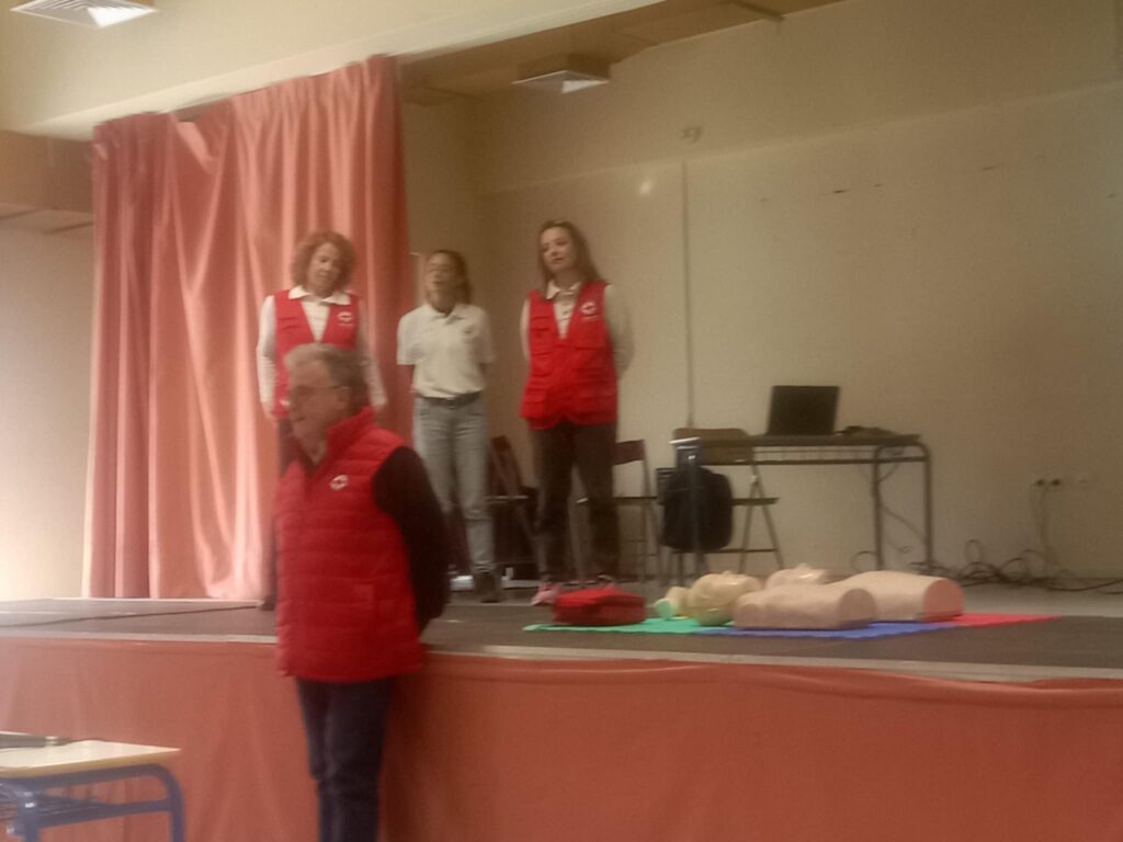 Την εκδήλωση τίμησε με την παρουσία του ο Πρόεδρος του Περιφερειακόύ Τμήματος, κ. Δημήτριος Αχιλαδέλλης, ο οποίος απηύθυνε σύντομο χαιρετισμό και αναφέρθηκε στη σημασία της εκπαίδευσης των νέων στις Πρώτες Βοήθειες και την Καρδιοπνευμονική Αναζωογόνηση, υπογραμμίζοντας τον καθοριστικό ρόλο της άμεσης και υπεύθυνης παρέμβασης για τη διαφύλαξη της ανθρώπινης ζωής.. Η ενημέρωση πραγματοποιήθηκε από τις πιστοποιημένες εκπαιδεύτριες κα. Αλεξάνδρα Τζίρτη και κα. Βασιλική Καραγιάννη, με τη συμβολή της εθελόντριας κα. Βίκυ Ματθαίου, οι οποίες μετέδωσαν στους μαθητές και στις μαθήτριες βασικές θεωρητικές γνώσεις και πρακτικές δεξιότητες σχετικά με την παροχή πρώτων βοηθειών και την εφαρμογή της ΚΑΡΠΑ.