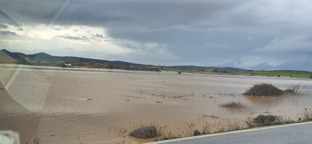 Ο κ. Παλαιολόγος Κυριαζής ενημέρωσε το σταθμό μας, ότι το ποτάμι του αεροδρόμιο ξεχειλίζει και έχει γεμίσει τα χωράφια γύρω και η γέφυρα πιέζεται.