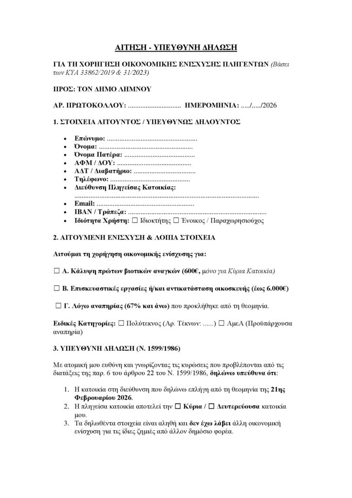 Ενημερώνουμε επίσης τους πληγέντες ότι η διαδικασία υποβολής αιτήσεων ξεκινά τη Δευτέρα 2 Μαρτίου 2026.