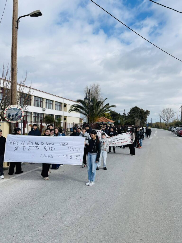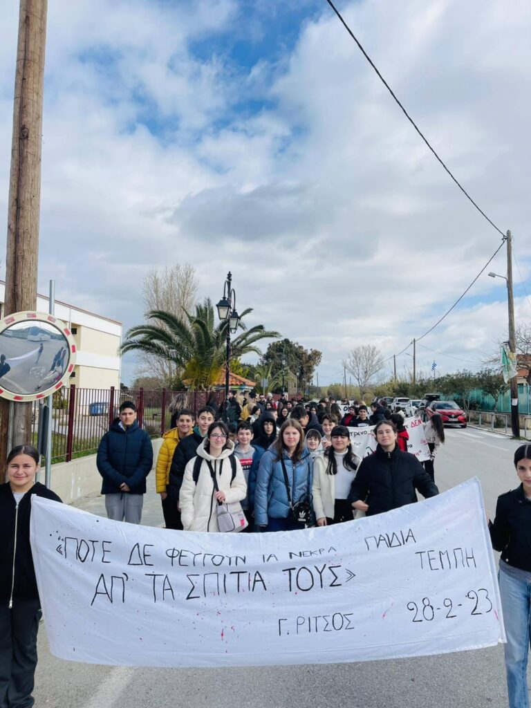 Φιλοξενήσαμε το Γενικό Λύκειο Μούδρου και πραγματοποιήσαμε από κοινού πορεία στον Μούδρο με πλακάτ και πανό που δημιούργησαν τα ίδια τα παιδιά. Όλη η σχολική κοινότητα, μαθητές, μαθήτριες και εκπαιδευτικοί μαζί στην πορεία με γενικό σύνθημα: “Ποτέ ξανά” και “Δικαιοσύνη”.