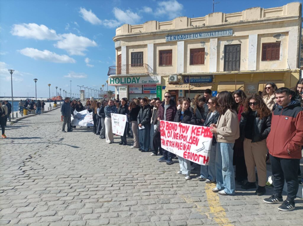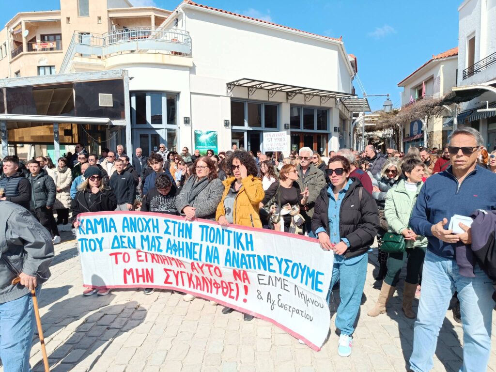 Περίπου 600 άνθρωποι μαζεύτηκαν στο λιμάνι της Μύρινας, ανταποκρινόμενοι στο κάλεσμα των σωματείων του νησιού μας, για να δείξουν ότι δεν ξέχασαν και διεκδικούν μια κοινωνία χωρίς Τέμπη.