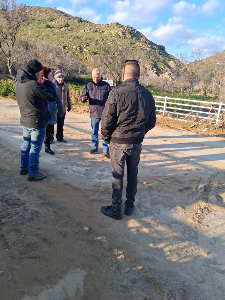 Στη συνέχεια συναντήθηκε με κατοίκους της Μύρινας και της παραλίας Πλατέος που έπαθαν ζημιές τόσο από τις πρόσφατες πλημμύρες, όσο και από τις προηγούμενες και δεν αποζημιώθηκαν. Αναδείχθηκαν και πάλι τα ζητήματα του ολοκληρωτικού καθαρισμού των χειμάρρων της περιοχής, αλλά και της οριοθέτησης των χειμάρρων. Χαρακτηριστικά είναι τα λόγια κατοίκου της περιοχής που ανέφερε ότι από τύχη δεν πνίγηκε από την πλημμύρα.