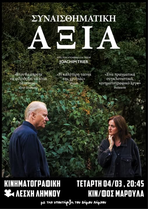Μια εξαιρετική ταινία φέρνει αύριο Τετάρτη 4/3 στο «Μαρούλα» η Κινηματογραφική Λέσχη Λήμνου. Ο Γιοακίμ Τρίερ, στην έκτη και πιο προσωπική ταινία της μέχρι τώρα καριέρας του, αφήνει πίσω την ρομαντική αγάπη για να μιλήσει για την οικογενειακή. Άλλωστε αυτά συνδέονται: στις οικογένειές μας πρέπει να αναζητήσουμε τους σπόρους όλων όσων μας στήριξαν και μάς έμαθαν να αγαπάμε, κι όλων όσων μάς ευνούχισαν και νομίζουμε ότι δεν αξίζουμε να αγαπηθούμε.