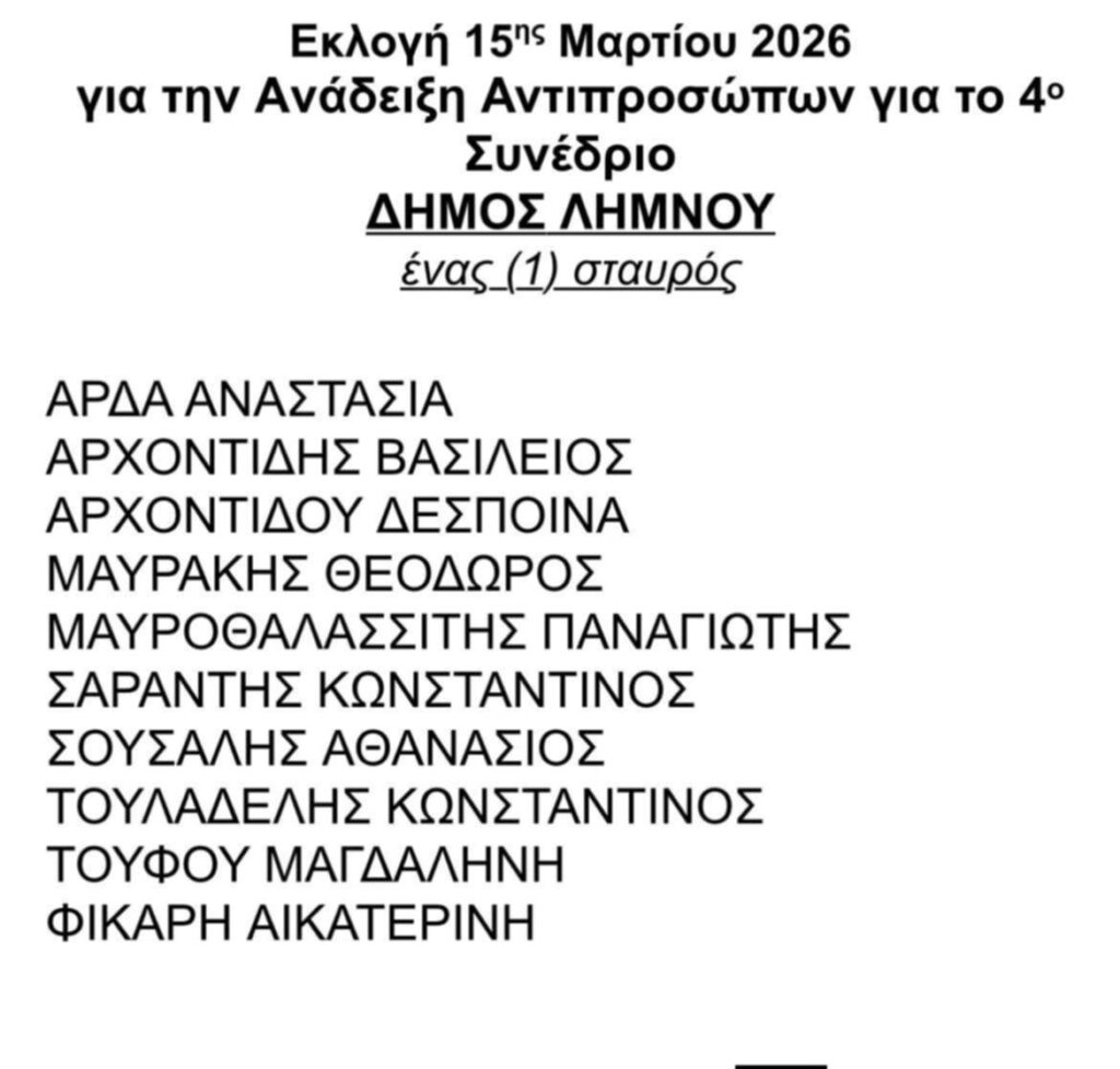 Η Νομαρχιακή Επιτροπή Λήμνου του ΠΑΣΟΚ-ΚΙΝΑΛ ανακοίνωσε τα ονόματα των υποψηφίων συνέδρων. Οι εκλογές θα πραγματοποιηθούν την Κυριακή 15 Μαρτίου.