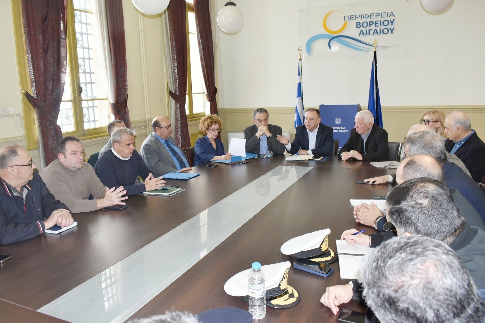 Ο Περιφερειάρχης Βορείου Αιγαίου Κωνσταντίνος Μουτζούρης συμμετείχε στην σημερινή σύσκεψη που πραγματοποιήθηκε στην Περιφέρεια με τον Υφυπουργό Αγροτικής Ανάπτυξης Χρήστο Κέλλα, τον Βουλευτή Λέσβου Χαράλαμπο Αθανασίου, τους Δημάρχους Μυτιλήνης Παναγιώτη Χριστόφα και Δυτικής Λέσβου, Ταξιάρχη Βέρρο, Αντιπεριφερειαρχών και στελεχών της Γενικής Διεύθυνσης Κτηνιατρικής καθώς και εκπροσώπων τυροκόμων, κτηνοτρόφων και Συνεταιρισμών, μετά τον εντοπισμό κρούσματος αφθώδους πυρετού στην Λέσβο.