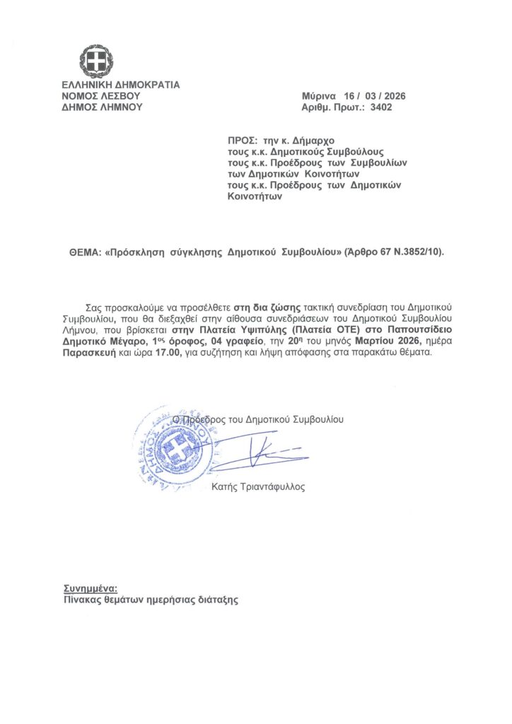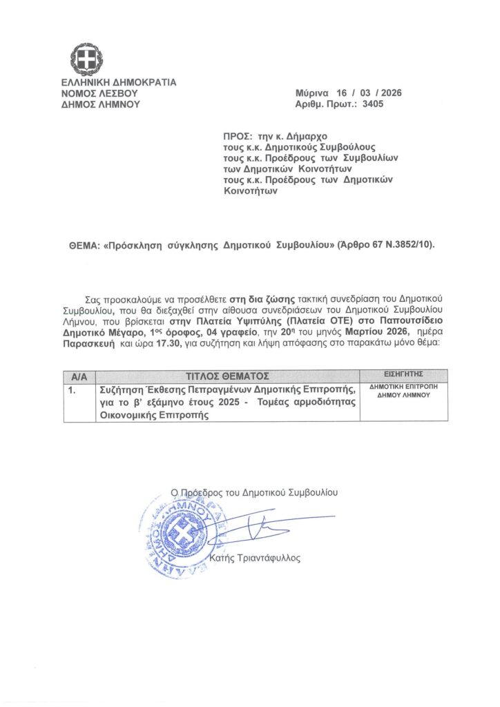 Τρεις συνεχόμενες συνεδριάσεις του Δημοτικού Συμβουλίου, έχουν κληθεί για αύριο Παρασκευή 20 Μαρτίου, ξεκινώντας στις 16:30 με τη συνεδρίαση λογοδοσίας της δημοτικής αρχής.