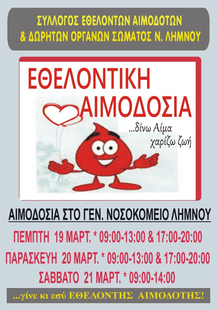 Ο Σύλλογος Εθελοντών Αιμοδοτών Λήμνου ευχαριστεί: