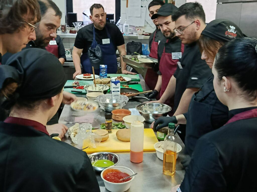 Με ενθουσιασμό, ομαδικότητα, συνεργασία και πολλή δημιουργική διάθεση, οι εκπαιδευτές μαγειρικής κ. Χρήστος Ντίνος και κ. Γιώργος Κιουρανάκης, η εκπαιδεύτρια Γαλλικών κα Ματίνα Σταμπουλίδου, σπουδαστές του Τμήματος Τεχνικός Μαγειρικής Τέχνης – Αρχιμάγειρας Σεφ Α εξαμήνου και η Διευθύντρια της ΣΑΕΚ Λήμνου κα Ιουλία Λυγδά έδωσαν τον καλύτερό τους εαυτό