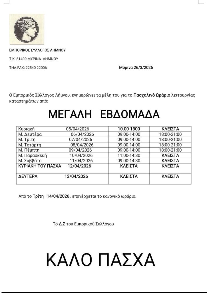 ΕΟΡΤΑΣΤΙΚΟ ΠΡΟΓΡΑΜΜΑ ΠΑΣΧΑΛΙΝΗΣ ΑΓΟΡΑΣ ΑΝΟΙΧΤΑ ΤΑ ΚΑΤΑΣΤΗΜΑΤΑ ΚΥΡΙΑΚΗ 5/4/2026 ΠΗΓΗ ΦΩΤΟΓΡΑΦΙΑΣ: ΛΟΥΙΖΑ ΜΕΤΣΑΙ