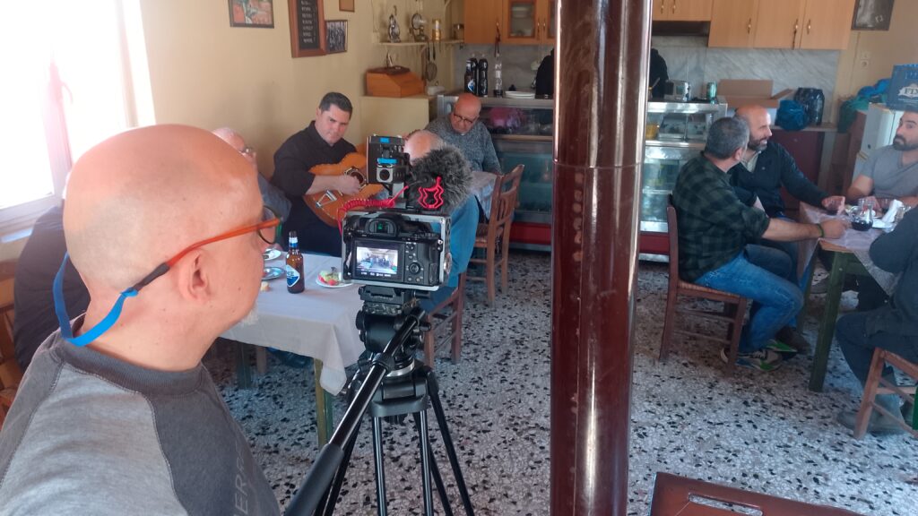 Μέσα από τη δημιουργική διαδικασία, ο χώρος αυτός μεταμορφώθηκε. Η ενέργεια, η αγάπη και το πάθος του καλλιτέχνη για τη μουσική του έδωσαν ξανά ζωή στο σκηνικό. Το καφενείο «γέμισε» φωνές, κίνηση και συναίσθημα, δημιουργώντας μια ατμόσφαιρα αυθεντικής σύνδεσης ανάμεσα στους συντελεστές.