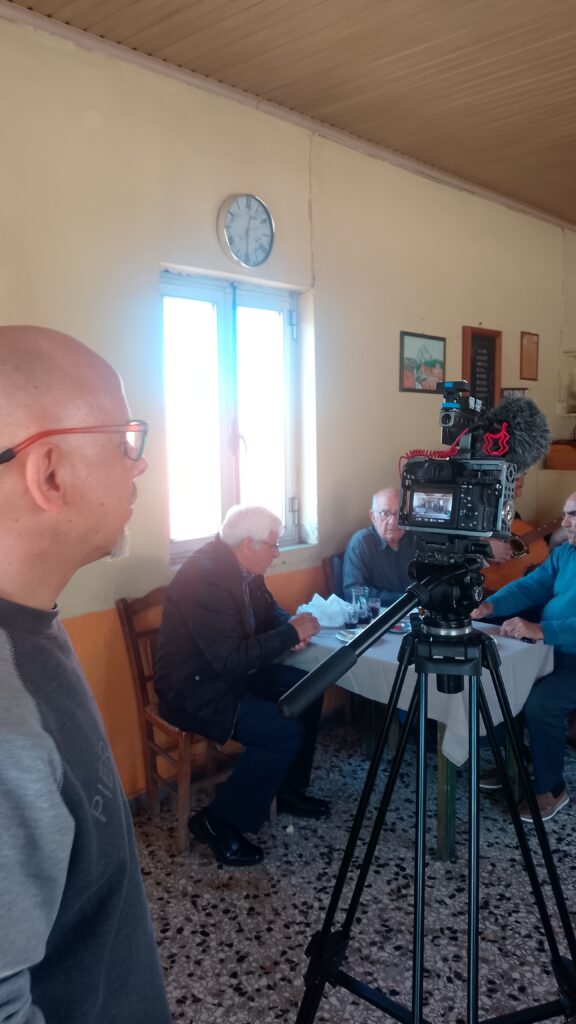 Τα γυρίσματα πραγματοποιήθηκαν σε ένα παλιό, κλειστό καφενείο στον Άγιο Δημήτριο της Λήμνου — έναν χώρο που κουβαλάει τη δική του ιστορία και μνήμη. Από την πρώτη στιγμή, η εικόνα του εγκαταλελειμμένου καφενείου, με τη σκόνη, τη σιωπή και τα σημάδια του χρόνου, θύμιζε ξεθωριασμένες αναμνήσεις μιας άλλης εποχής.