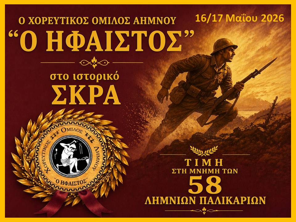Ο Χορευτικός Όμιλος Λήμνου «Ο ΗΦΑΙΣΤΟΣ» στο Ιστορικό Σκρά στις 16 και 17 Μαΐου 2026. Ένα ταξίδι υποχρέωσης και τιμής στη μνήμη των 58 Λημνιών παλικαριών που έχασαν τη ζωή τους στη Μάχη του Σκρά στις 17-5-1918.