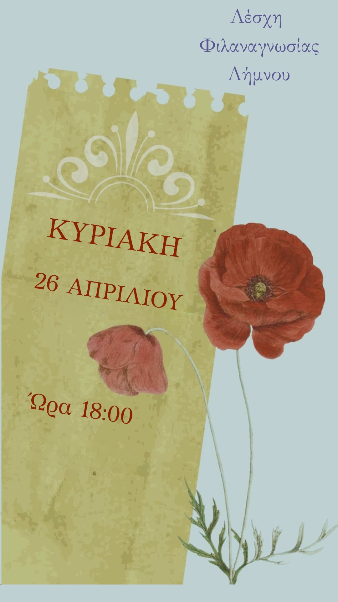 Σε ένα νησί με μακρά ιστορία και πλούσια πολιτιστική παρακαταθήκη, όπως η Λήμνος, η ανάγνωση αποκτά έναν ιδιαίτερο συμβολισμό. Όπως η γη αυτή υπήρξε τόπος συνάντησης λαών και ιστοριών, έτσι και το βιβλίο λειτουργεί ως σημείο συνάντησης ιδεών και πολιτισμών, όπως αυτά αναδεικνύονται μέσα από τις σελίδες των βιβλίων που διαβάζουμε.