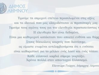 Μήνυμα της Δημάρχου Λήμνου κ. Ελεονώρας Γεώργα για την επέτειο…
