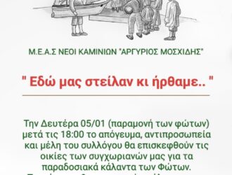 Ο Μ.Ε.Α.Σ. ΝΕΟΙ ΚΑΜΙΝΙΩΝ «ΑΡΓΥΡΙΟΣ ΜΟΣΧΙΔΗΣ» ενημερώνει τους κατοίκους του…