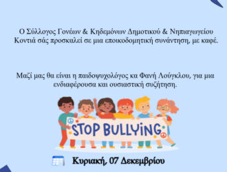 Ο Σύλλογος Γονέων και Κηδεμόνων του Δημοτικού και Νηπιαγωγείου μας προσκαλεί σε εκδήλωση σε καφέ…