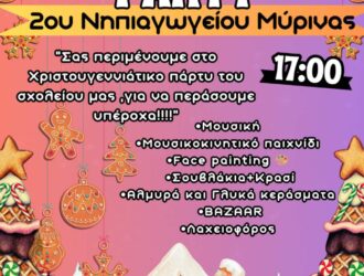 Σε Χριστουγεννιάτικο πάρτι μας καλούν στο 2ο Νηπιαγωγείο της Μύρινας, την Τετάρτη 3 Δεκεμβρίου, στις…