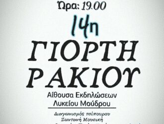 Ο Πολιτιστικός Σύλλογος Μούδρου διοργανώνει την 14η Γιορτή Ρακιού, το Σάββατο 13 Δεκεμβρίου, στις 7:00…